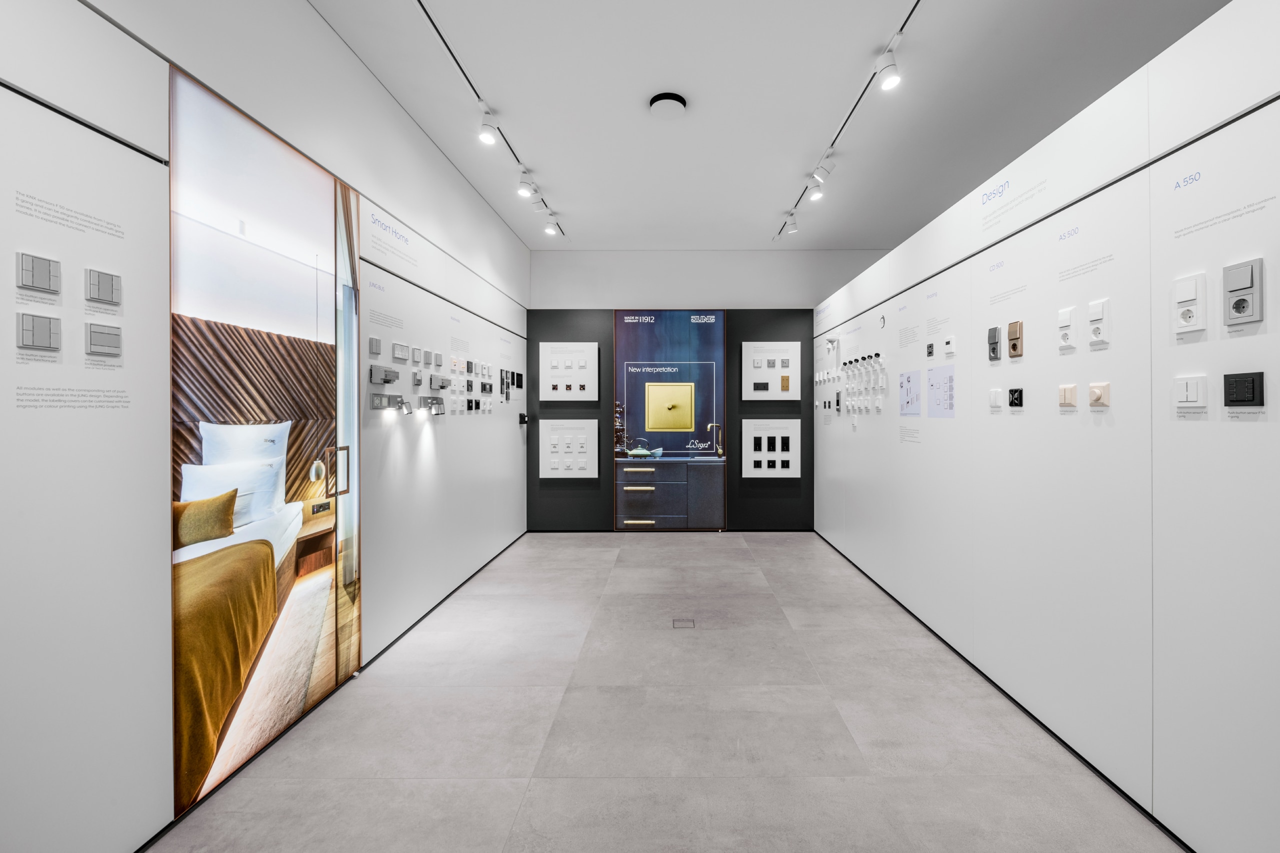 Uzmanība tiek pievērsta ne tikai JUNG produktiem, bet arī to integrācijai rūpīgi pārdomātā kopējā koncepcijā – materiālu, virsmu, krāsu un apgaismojuma kombinācijas, kā arī intuitīva funkcionalitāte.